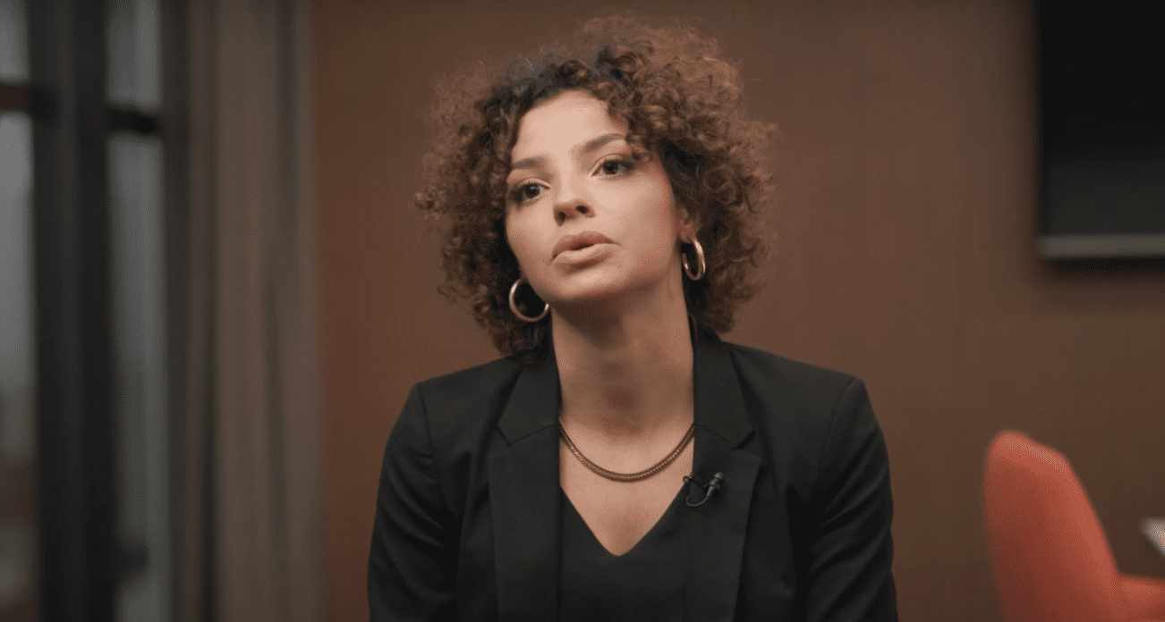 Amanda on stage with microphone